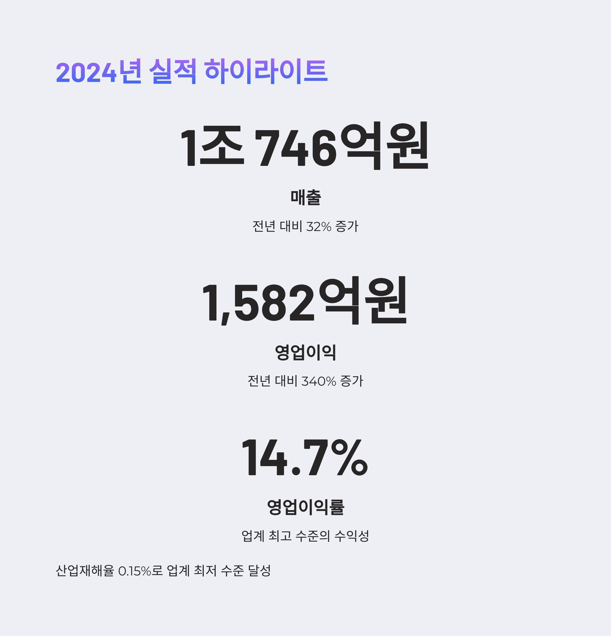 | 2024년 실적 | 매출 1조 / 영업이익 1,582억 |