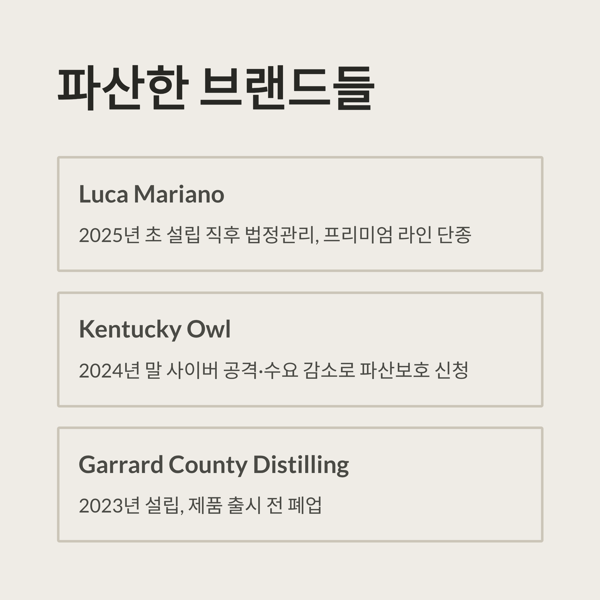 켄터키 위스키 산업 위기와 브랜드 파산 현황