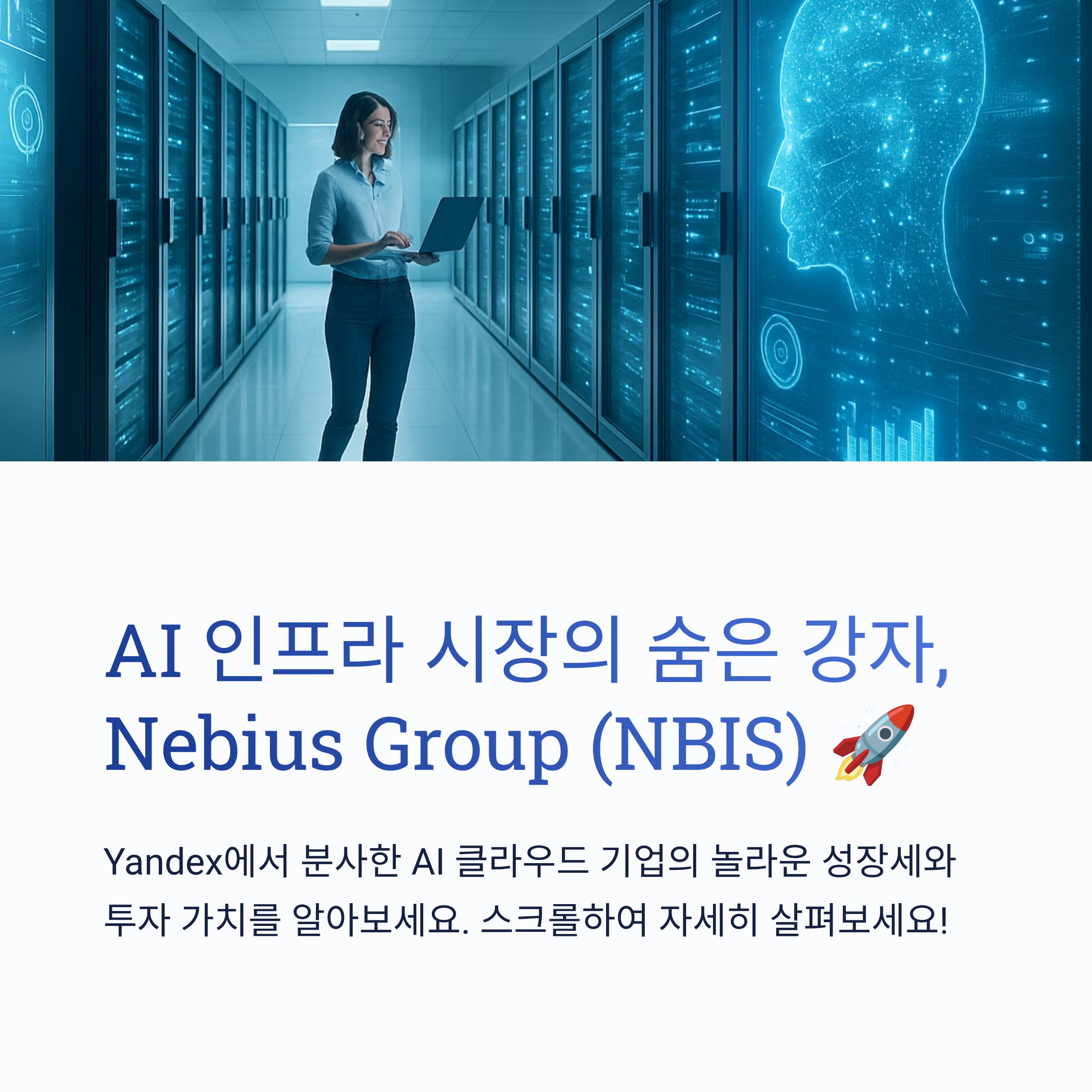 📈 AI 시대, 주목해야 할 기업 중 하나는 바로 Nebius Group (NASDAQ: NBIS)입니다. Yandex에서 분사한 이 기업은 AI 클라우드 시장의 판도를 바꾸고 있다는 평가를 받고 있는데요. 이번 글에서는 NBIS의 실적, 전략, 주가 흐름을 집중적으로 살펴보겠습니다.