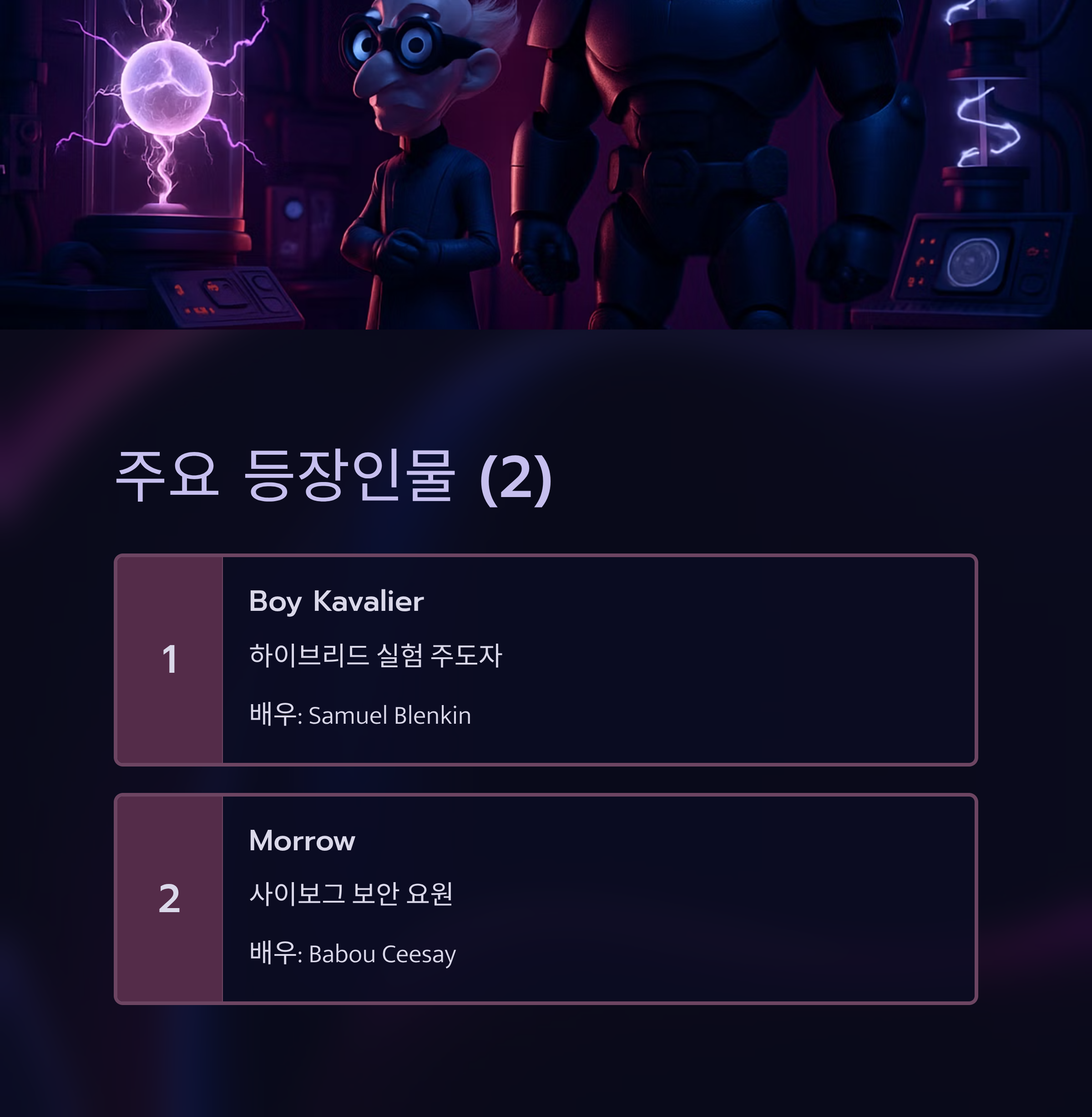 | Babou Ceesay | Morrow | 사이보그 보안 요원 |