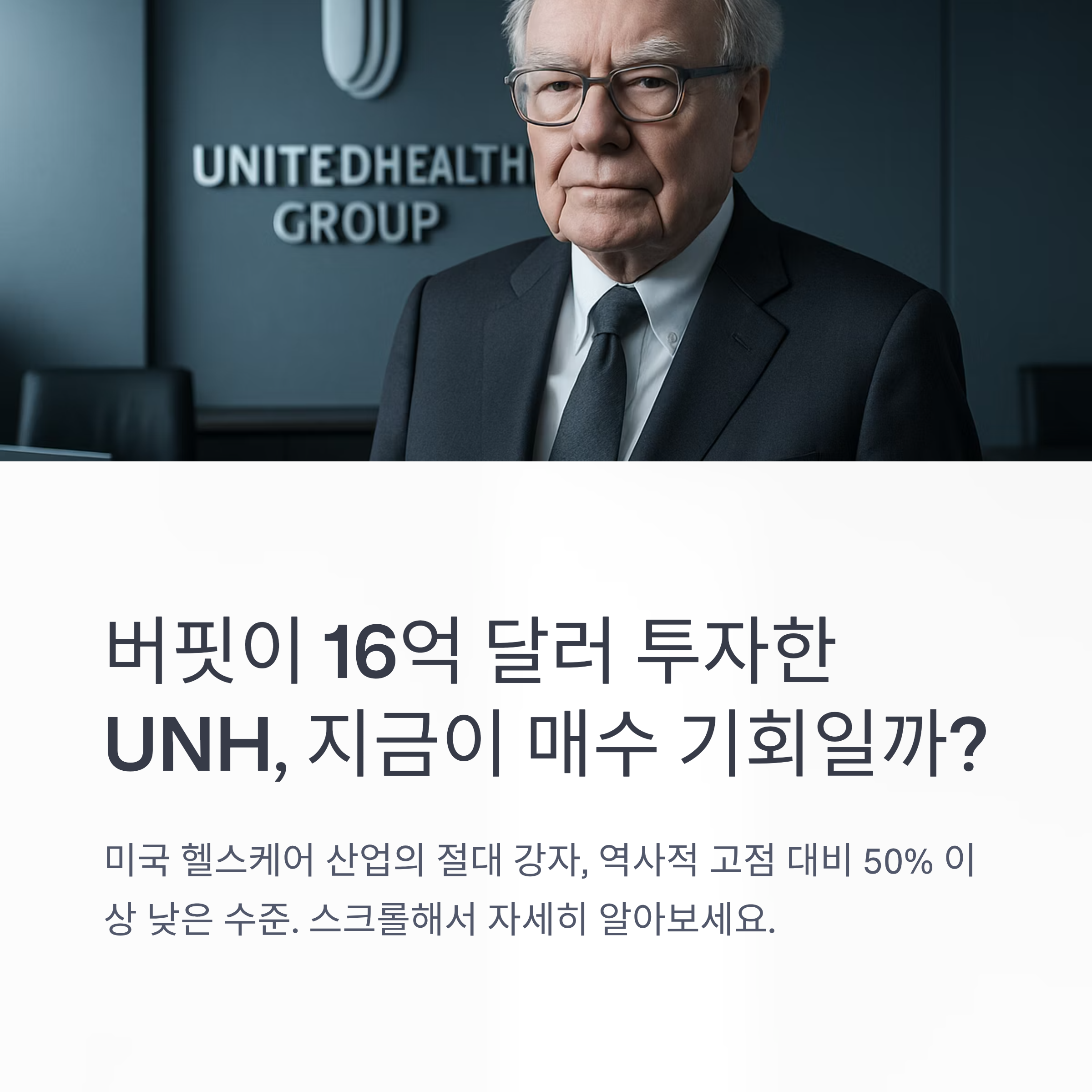 2025년 8월, 버크셔 해서웨이가 약 16억 달러 규모의 UNH 주식을 신규 매입했습니다. SEC 공시 이후 프리마켓에서 주가가 12% 이상 상승하며 단기 반등 흐름을 보였습니다.