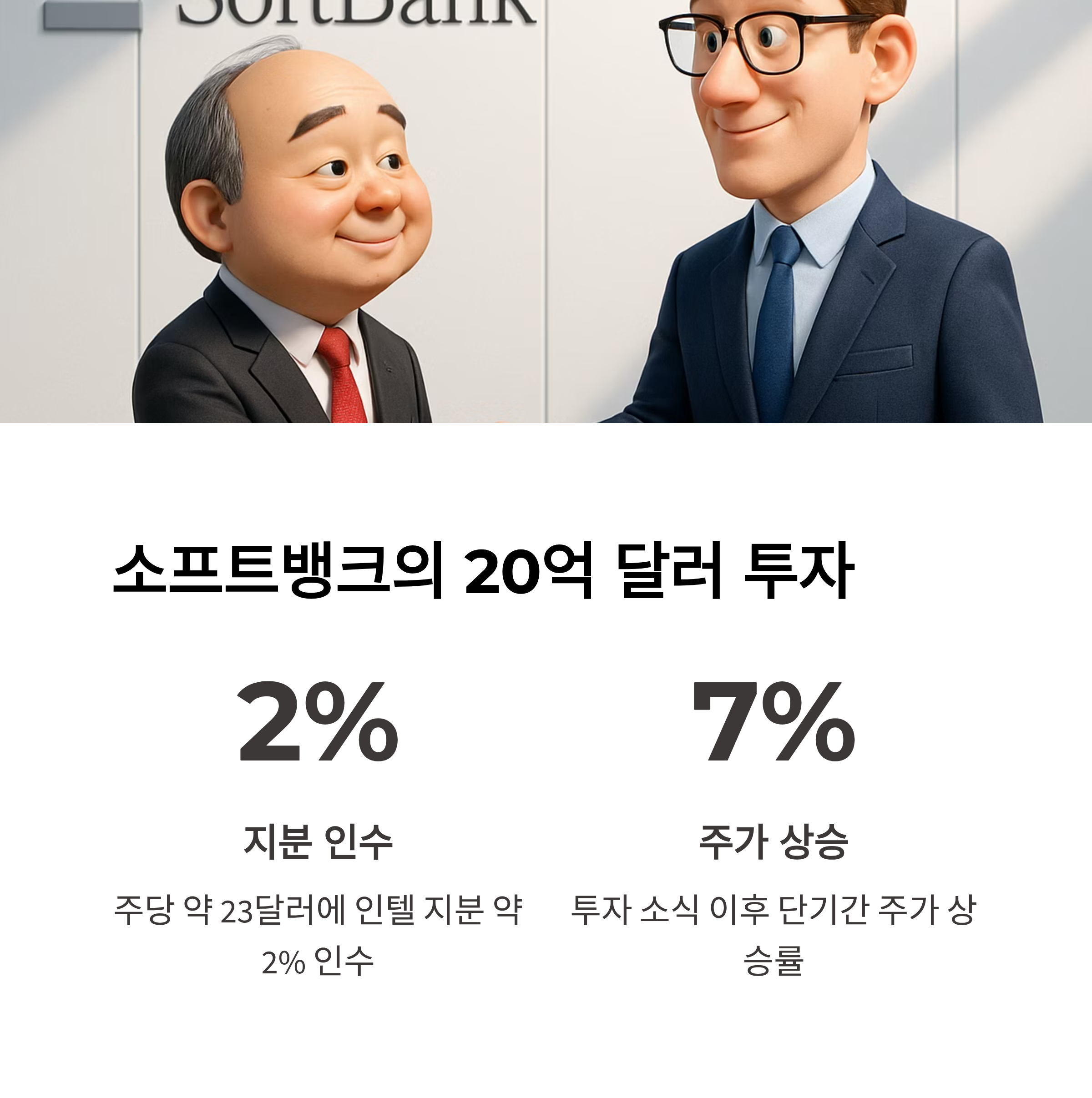 2025년 8월, 일본의 소프트뱅크는 인텔 주당 약 23달러에 약 2% 지분을 인수하며 20억 달러 규모의 투자를 단행했습니다. 이는 단순한 재무 투자라기보다, AI와 데이터센터 분야에서 인텔의 성장 가능성을 높이 평가한 결과입니다.