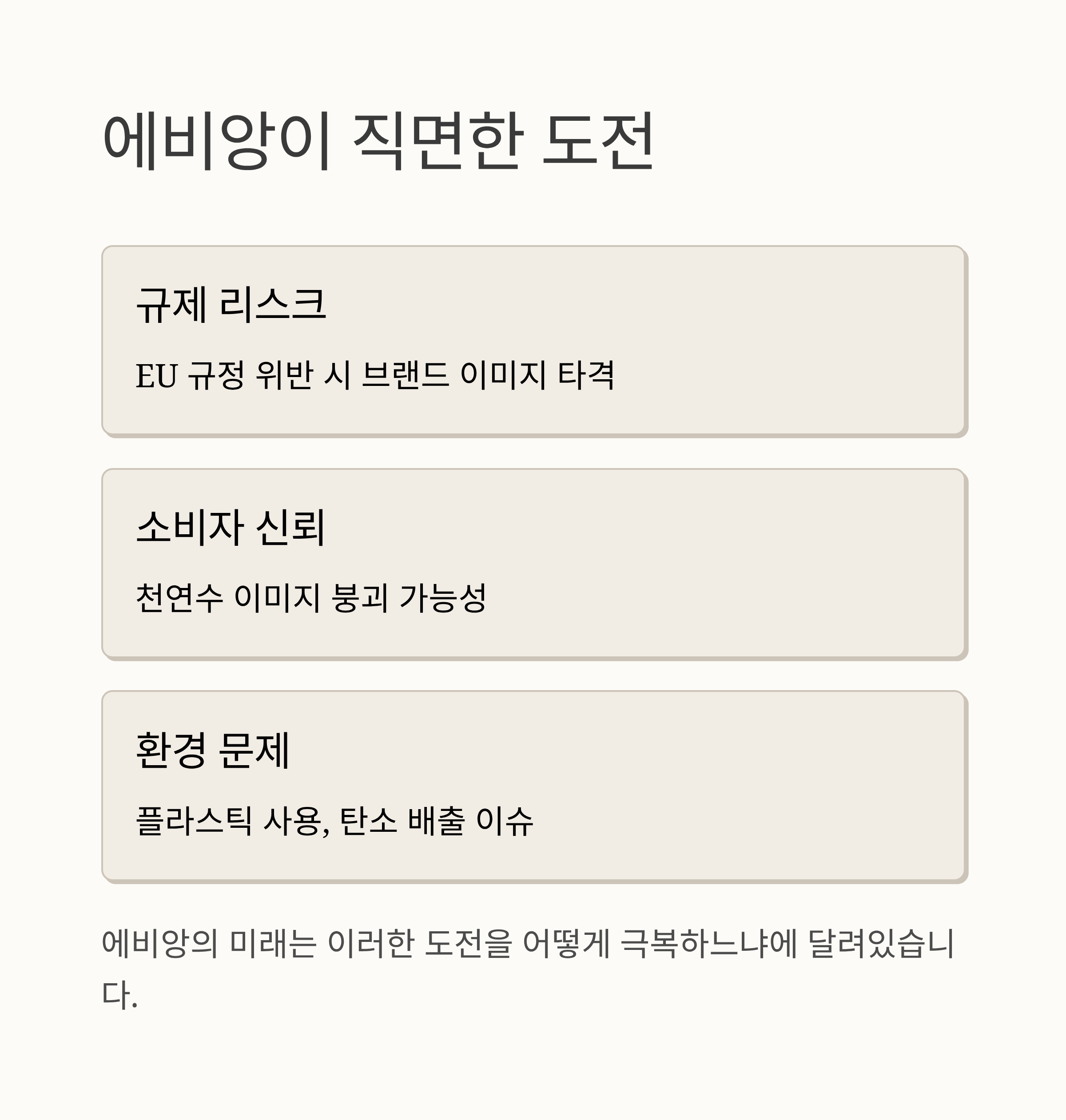 - 규제 리스크: EU 규정 위반 시 브랜드 이미지 타격