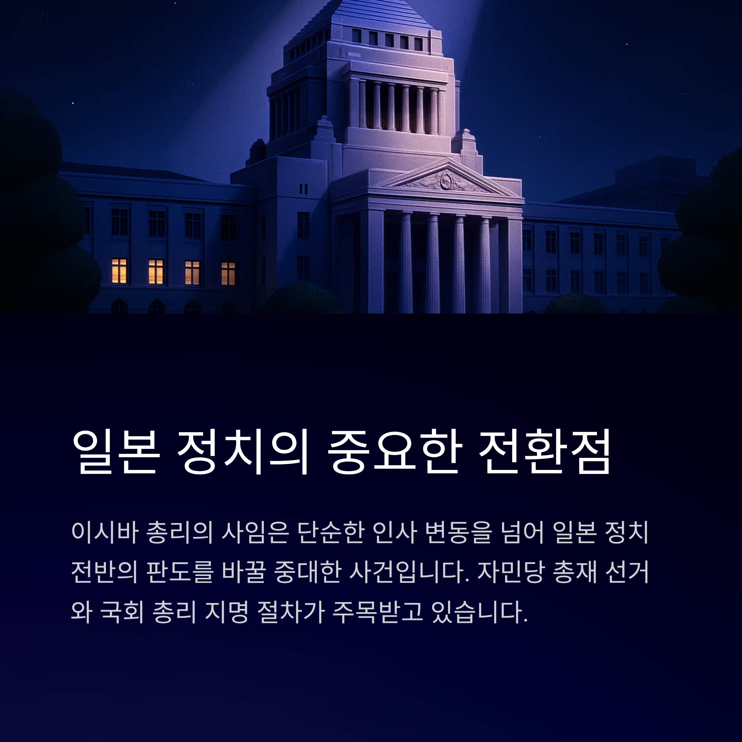 이시바 총리의 사임은 자민당과 일본 정치 전반에 큰 충격을 주었습니다.