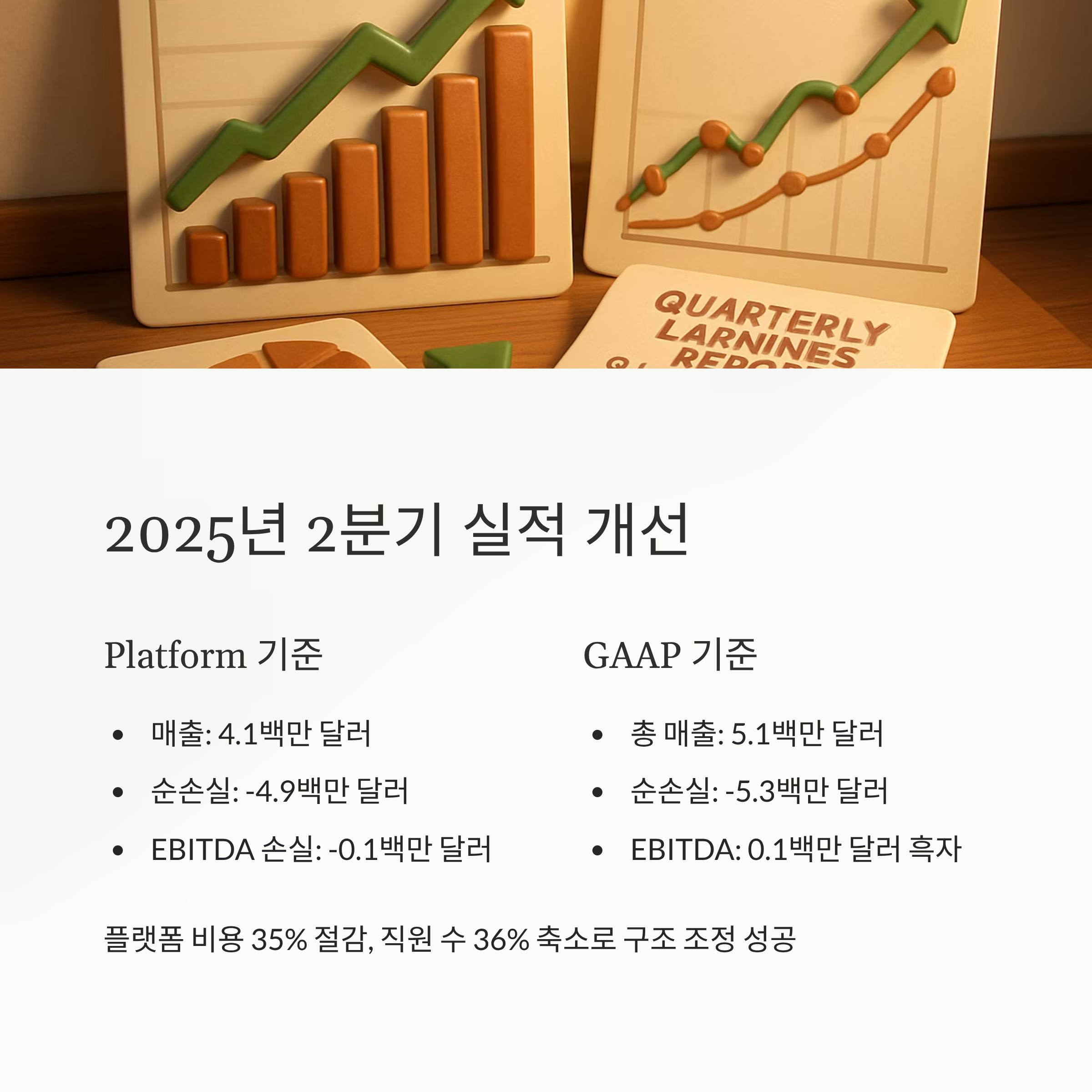 - EBITDA 손실: –0.1백만 달러 → 전년 –2.5백만 달러 대비 개선