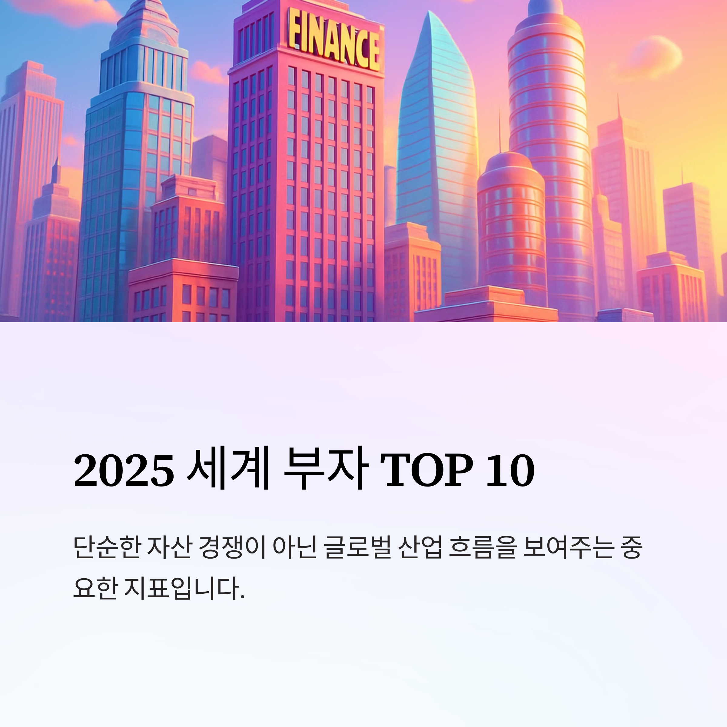 2025년 세계 부자 순위는 단순한 자산 경쟁이 아닌 글로벌 산업 흐름을 보여줍니다. richest man in the world라는 키워드는 단순한 호기심을 넘어 경제, 산업, 기술 트렌드를 읽을 수 있는 중요한 자료입니다.