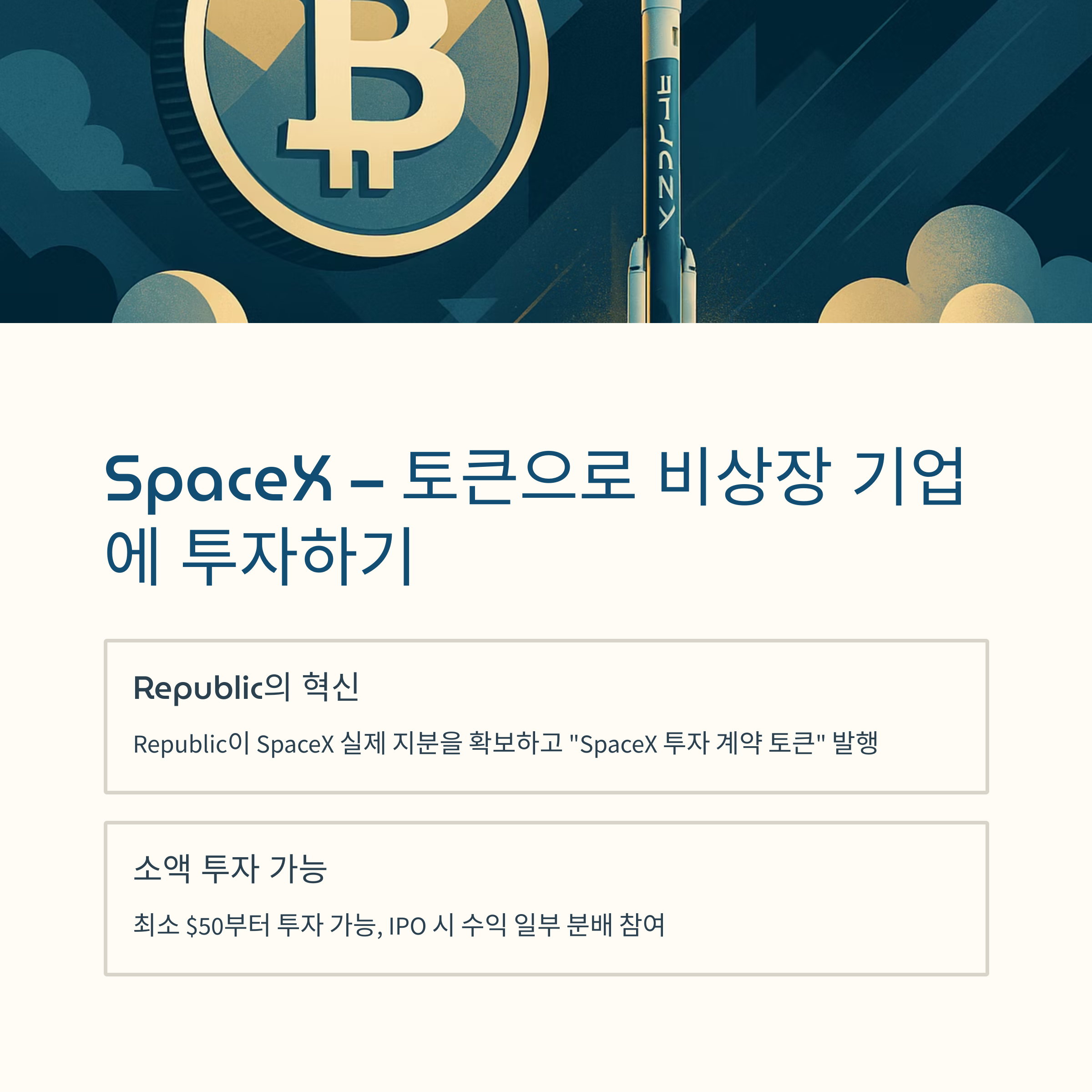 미국 플랫폼 Republic은 SpaceX 지분 일부를 바탕으로 “SpaceX 투자 계약 토큰”을 발행했습니다.