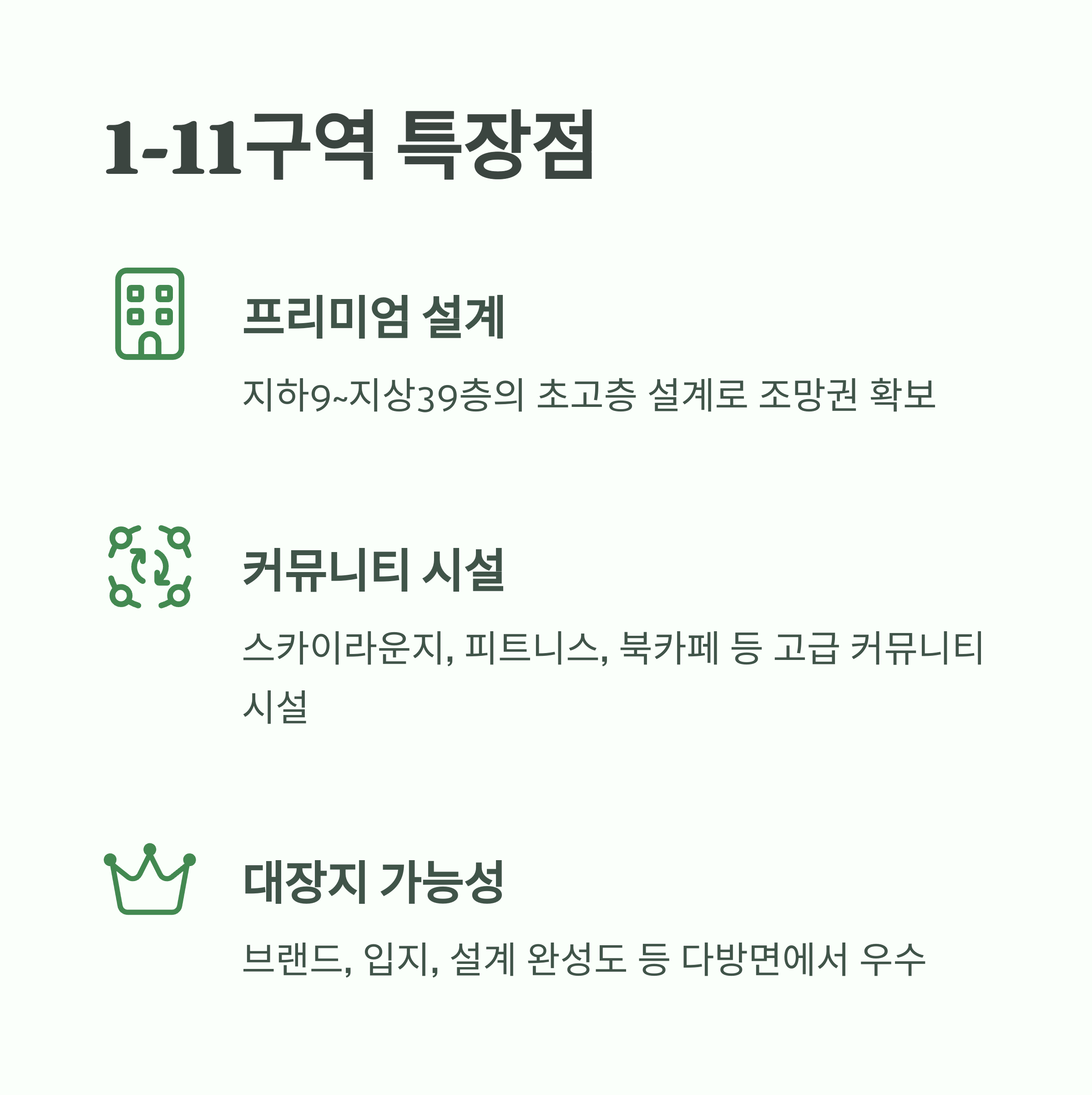 | 1-11 특징 | 브랜드, 입지, 시세 모두 강세 |