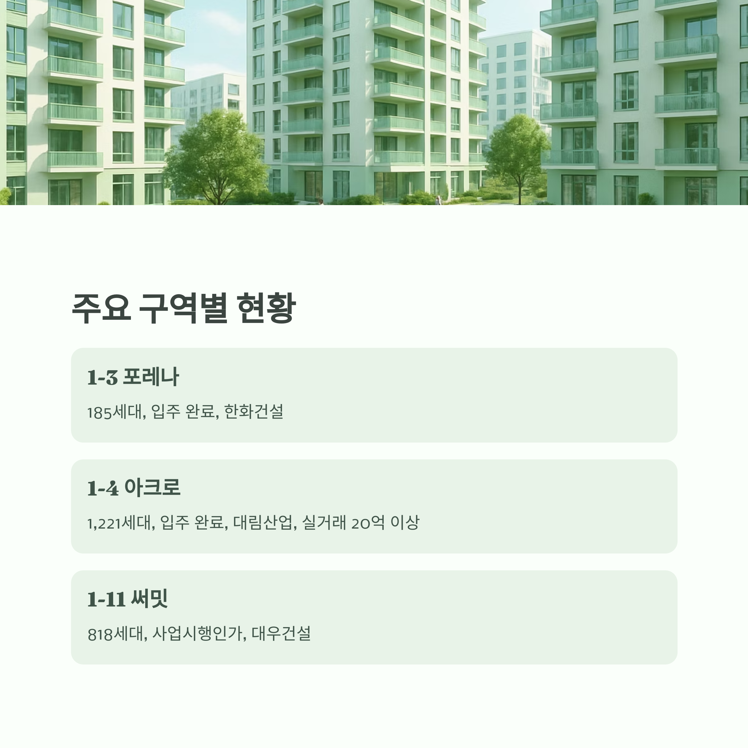 - 1-11 써밋: 2024년 기준 사업시행인가 완료, 향후 대장 예상