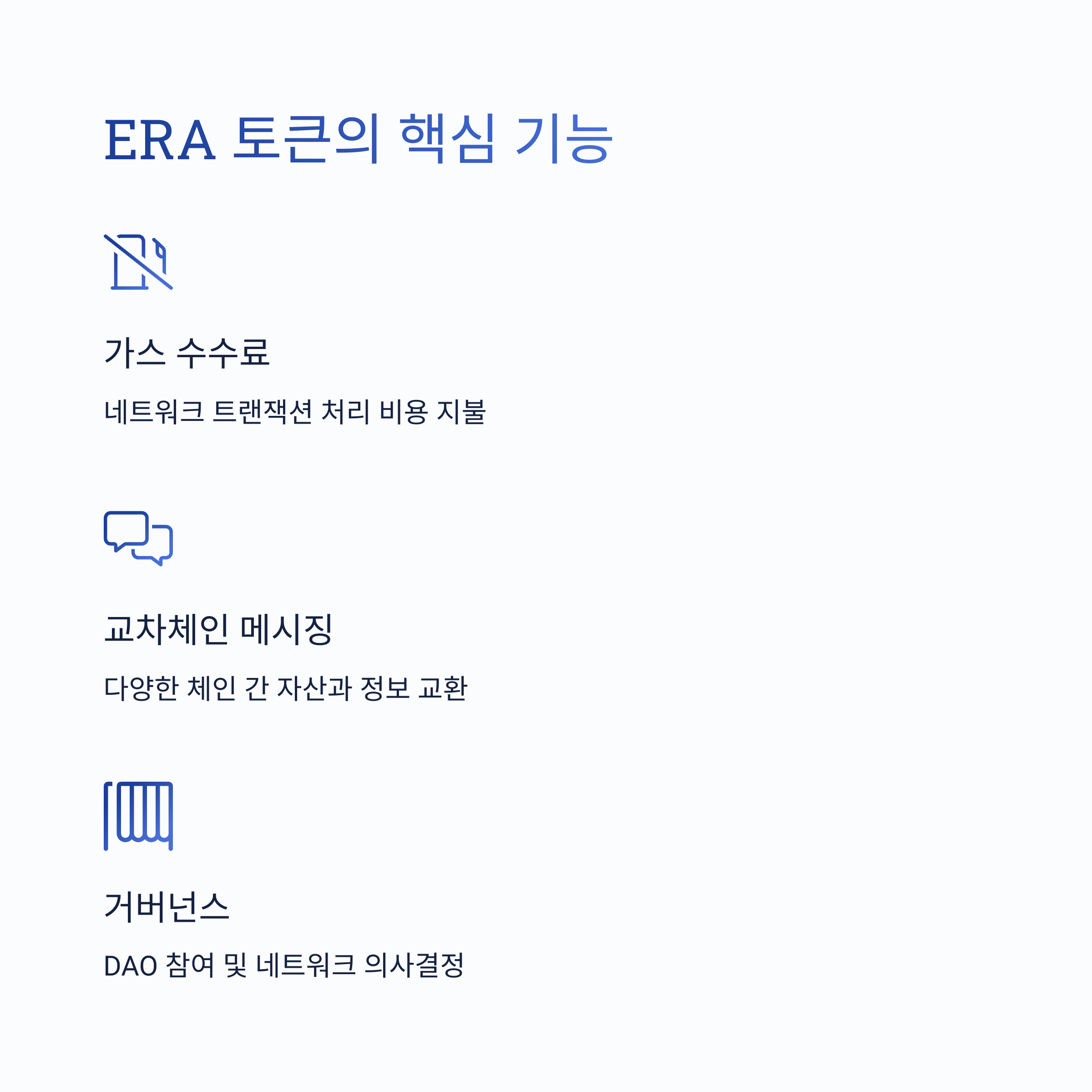 - 용도: 가스 수수료, 교차체인 메시징, 스테이킹 및 거버넌스 참여